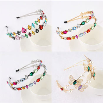 Fascia per capelli barocca di lusso con strass di cristallo a due piani con Mix di diamanti colorati fascia per capelli fatta a mano con farfalla accessori per capelli da donna